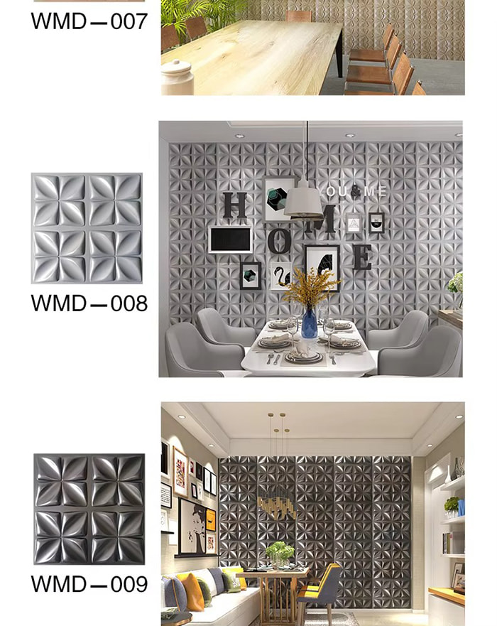 Os painéis de parede 3D são um novo tipo de material decorativo. Através da prensagem a quente do molde, gravação e fresagem ou impressão CNC, padrões tridimensionais são formados na superfície dos painéis. Seus materiais básicos incluem PVC, placa de densidade, liga de alumínio, fibra de bambu, etc. Tomando o PVC como exemplo, materiais compósitos de alto peso molecular são extrudados em alta temperatura e os padrões de superfície são prensados por moldes de aço de precisão, com precisão côncava e convexa mínima atingindo 0,1 mm. Os painéis de parede 3D têm um efeito visual tridimensional. Através do princípio da refração de luz e sombra, o plano 2D é transformado em um efeito visual 3D com sensação de profundidade, e a estratificação visual é aumentada mais de 3 vezes na mesma área.