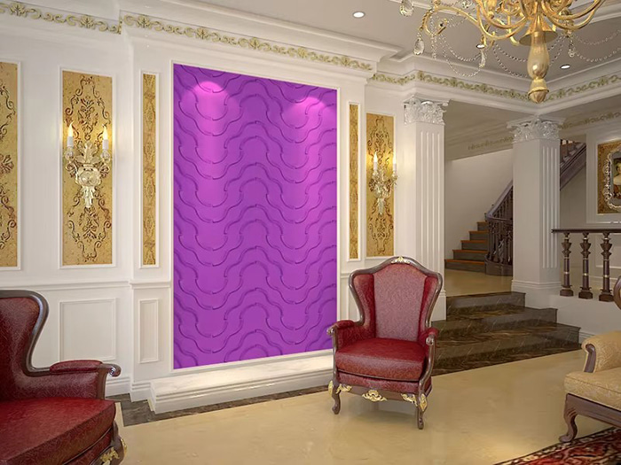 Os painéis de parede 3D de PVC são painéis compostos feitos de resina de cloreto de polivinila (PVC) como matéria-prima principal, que são formados em relevo tridimensional, textura gradiente ou efeitos dinâmicos de luz e sombra por meio de impressão 3D ou tecnologia de gravação CNC. A superfície adota revestimento de cura UV ou tecnologia de transferência de alta precisão para simular a textura natural dos grãos de madeira, grãos de pedra, metal, etc., e tem as características de impermeável e à prova de umidade, retardador de fogo, peso leve e alta resistência. É adequado para hotéis de alto padrão, espaços comerciais, salas de exposição de arte e outros cenários, sendo uma alternativa inovadora aos materiais decorativos tradicionais.