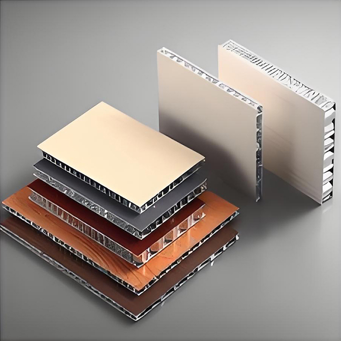 O painel de parede em favo de mel de alumínio é uma estrutura em sanduíche, composta por duas camadas de alumínio e um núcleo em favo de mel. O painel é feito principalmente de placa de liga de alumínio 3003H24 de alta qualidade ou placa de alumínio de liga de alto manganês 5052AH14 como material base, com uma espessura de painel de 0,8 ~ 1,5 mm e uma espessura de placa inferior de 0,6 ~ 1,0 mm. O núcleo do favo de mel é feito de folha de alumínio 3003 muito fina com uma espessura de 0,04 ~ 0,06 mm e um comprimento lateral de 5 ~ 6 mm. Possui uma estrutura hexagonal de furos em favo de mel com furos conectados entre si. Todo o processo de processamento é concluído em uma moderna fábrica com tecnologia de prensagem a quente.