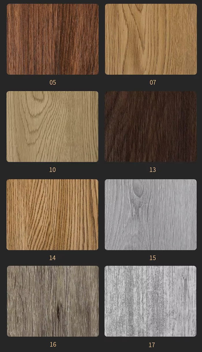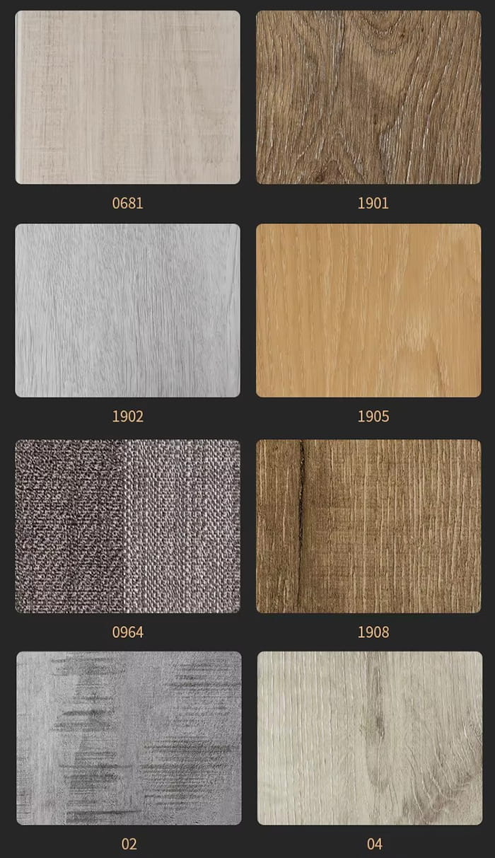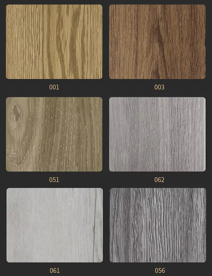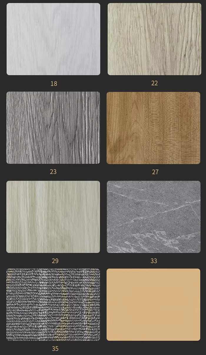 Processo composto: O filme colorido (precisão de impressão 1200dpi) e a camada resistente ao desgaste (0,3 mm) são prensados a quente e a pressão de laminação é ≥5MPa.
